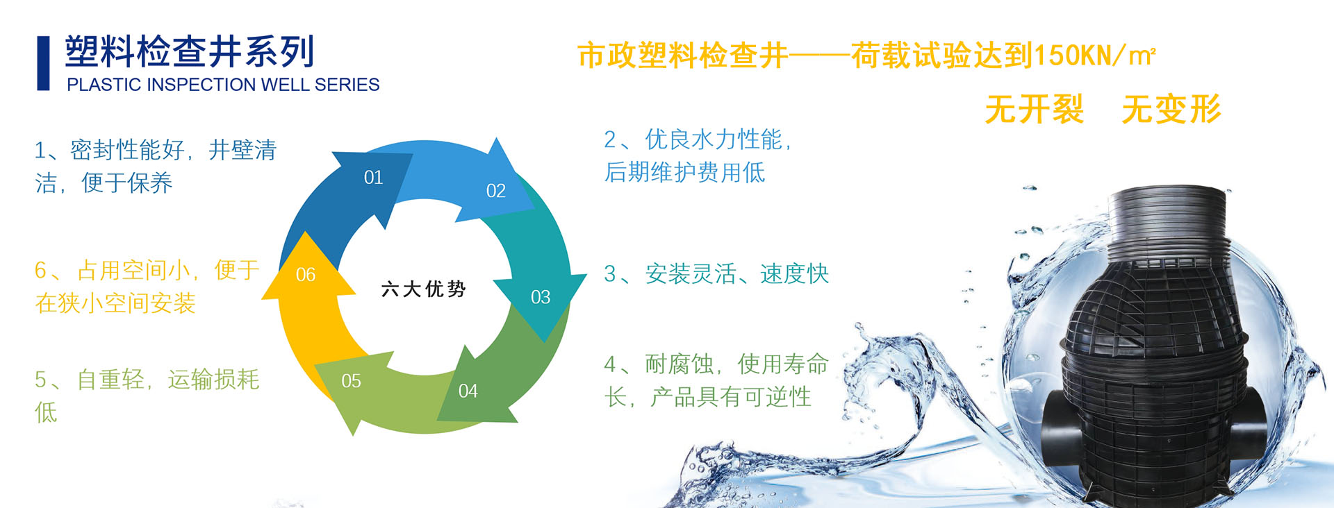 一、文遠環保塑料檢查井的優勢有五點:節地、節能、節水、節材、環保。(1)、耐酸堿腐蝕耐老化、使用壽命長。(2)、安全環保...